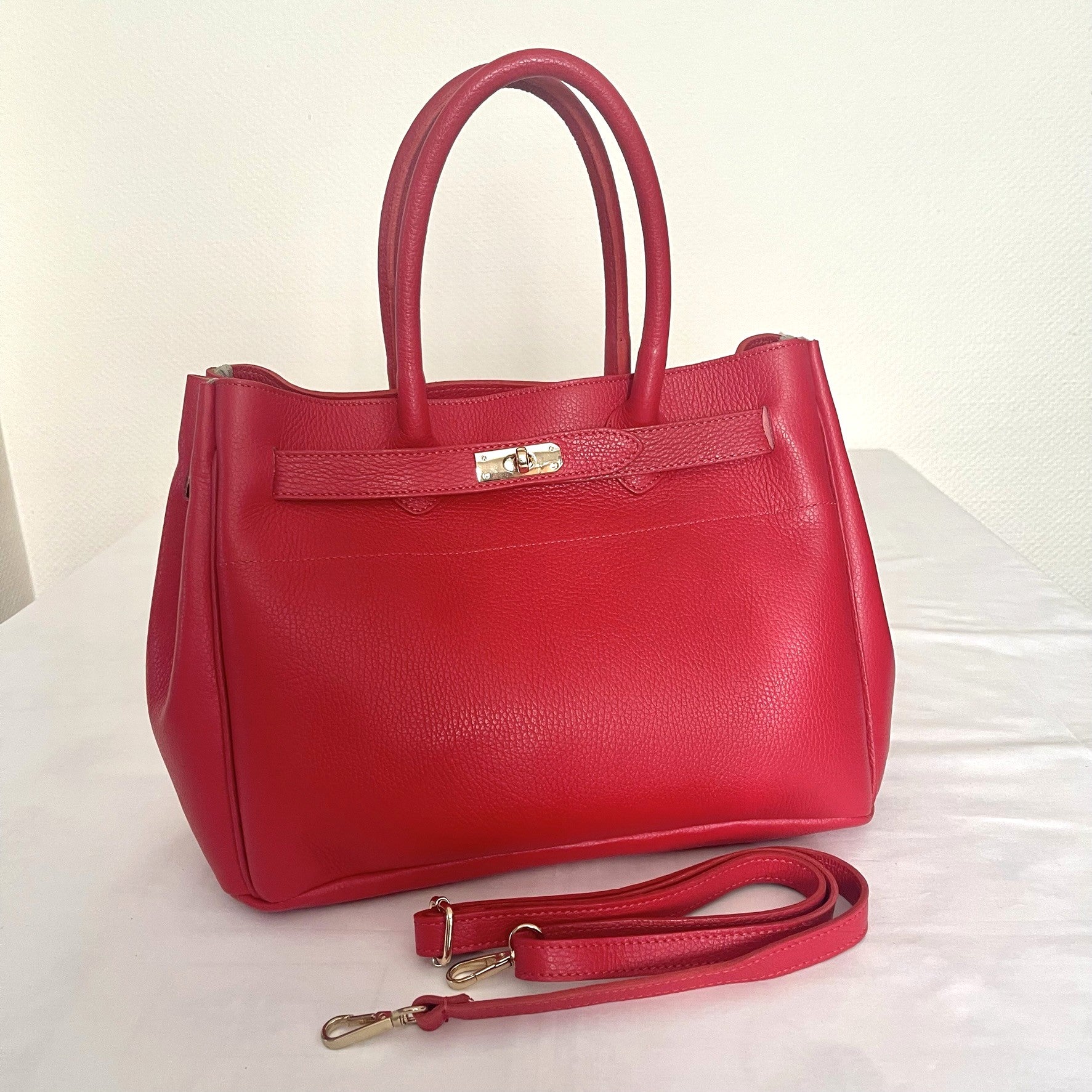 De luxury, this bag combines French design with fine Italian craftsmanship. Made from rich red leather with an off-white lining, it’s an inspired bag from the iconic Birkin.